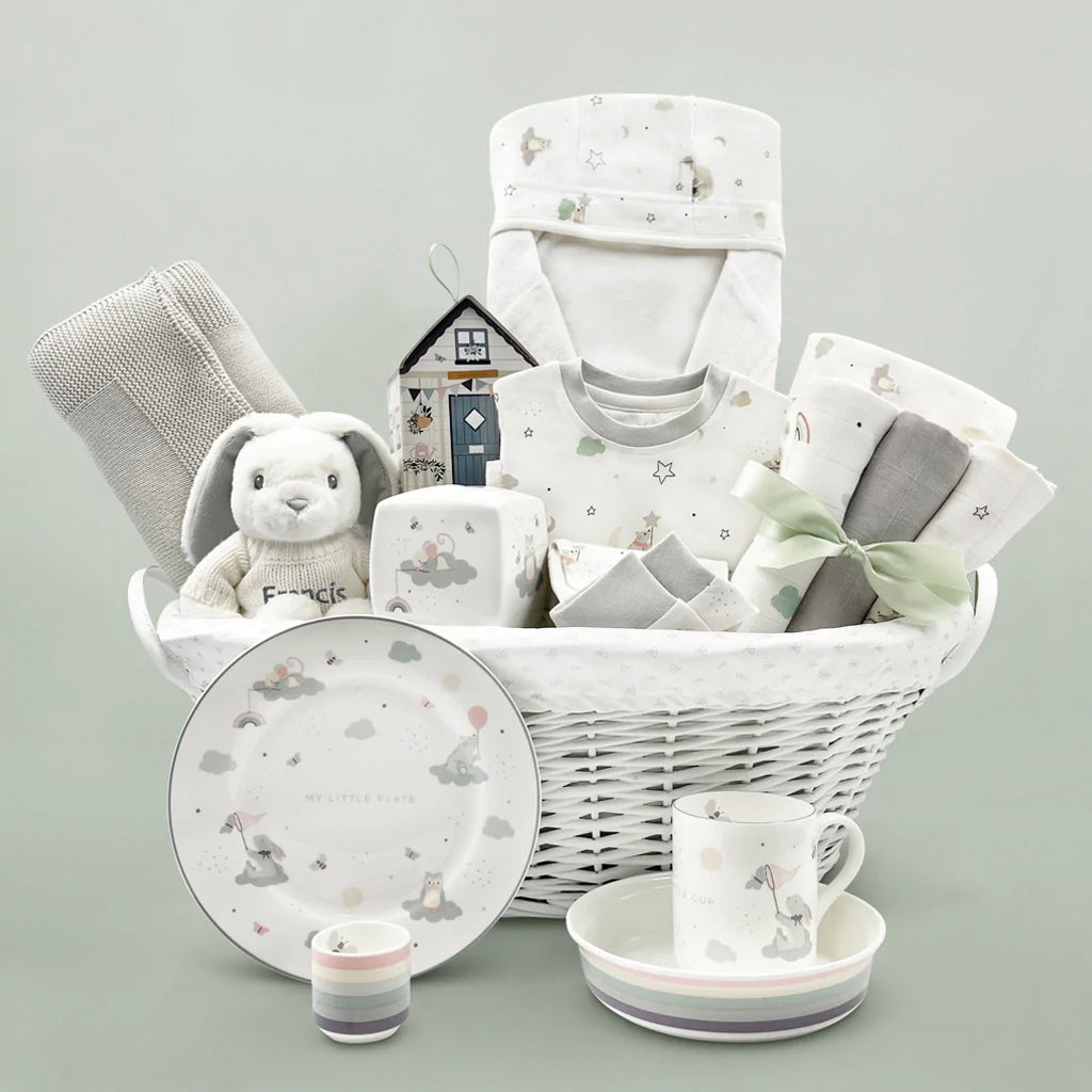 Our gorgeous new baby hampers and new baby baskets make a wonderful new baby gift for any budget. Packed full of beautiful baby essentials including award winning natural skincare for mum and baby, soft toys, blankets and more, our new baby gift hampers arrive beautifully gift wrapped in either our exclusive illustrated gift boxes or a luxury lined gift basket. Perfect for a maternity leave gift, baby shower or new born baby gift.