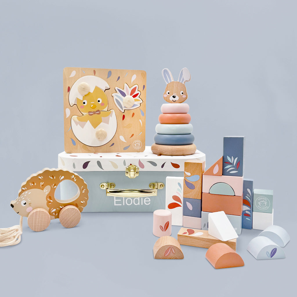 We believe every toddler gift should spark imagination. When children hold, touch & act out a story, it fuels focus, creativity & a lifelong love of books. That’s why we’re pairing much loved books with soft toys, cosy personalised blankets, or even a little digger to match the story, turning reading time into cuddles, play & wonder.